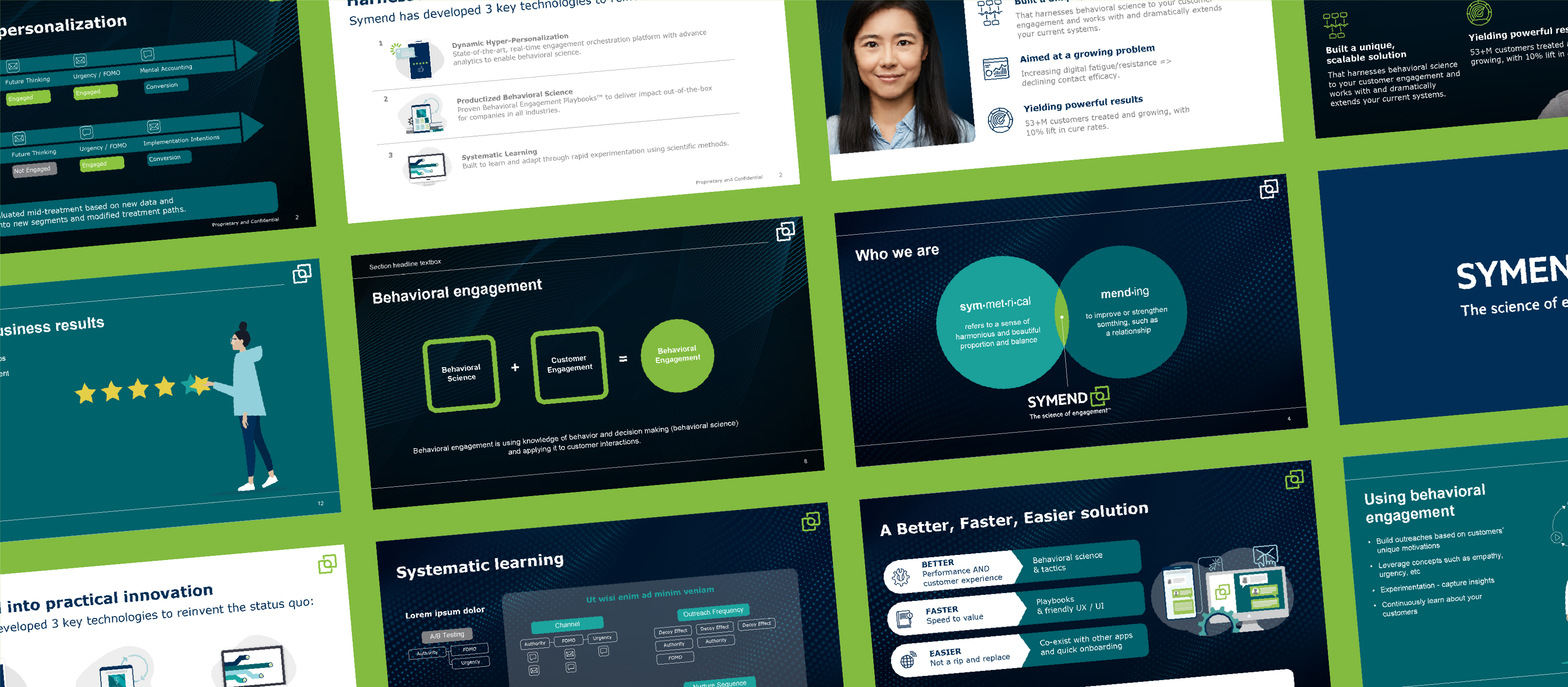 We enabled the Symend team to rapidly rework existing elements of their website and critical communications materials, delivering over 400 new assets per month. This burst of creative output gave all teams the materials needed to connect with new and existing clients and educate them about Symend’s evolving platform.